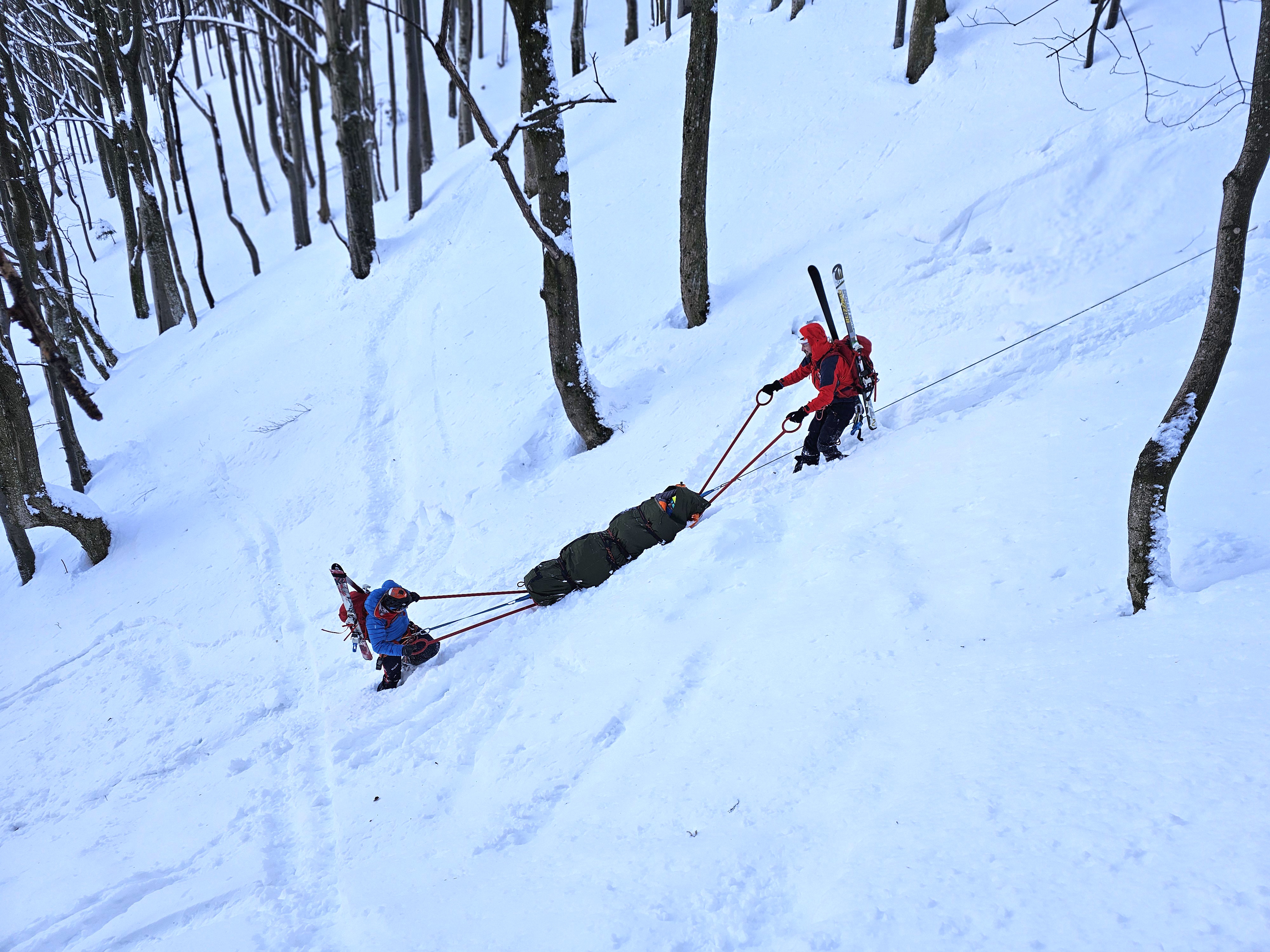Nakon zbrinjavanja, unesrećeni je transportiran i sigurno spušten pomoću akije, pri čemu su uvježbani postupci kretanja i osiguranja na snježnom terenu, komunikacija unutar tima te koordinacija u svim fazama intervencije. Vježba je provedena u realnim zimskim uvjetima, kako bi se dodatno naglasila važnost rutine, uigranosti i pravilne raspodjele uloga.